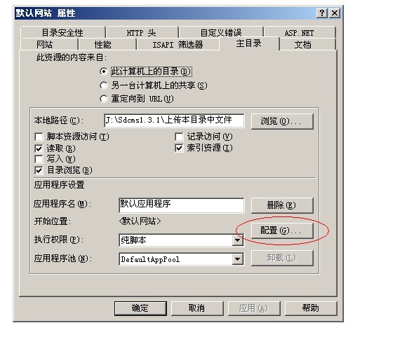 本文示范以windows 2003操作系统为例 1.打开IIS的默认网站的属性,如下图